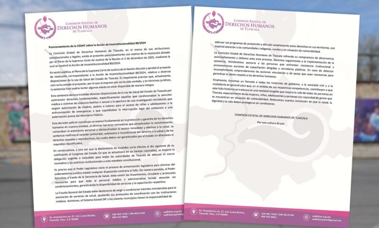 La Comisión Estatal de Derechos Humanos de Tlaxcala, en el marco de sus atribuciones constitucionales y legales, emite el presente posicionamiento con motivo de la resolución dictada por el Pleno de la Suprema Corte de Justicia de la Nación el 2 de diciembre de 2025, mediante la cual se resolvió la Acción de Inconstitucionalidad 89/2024.