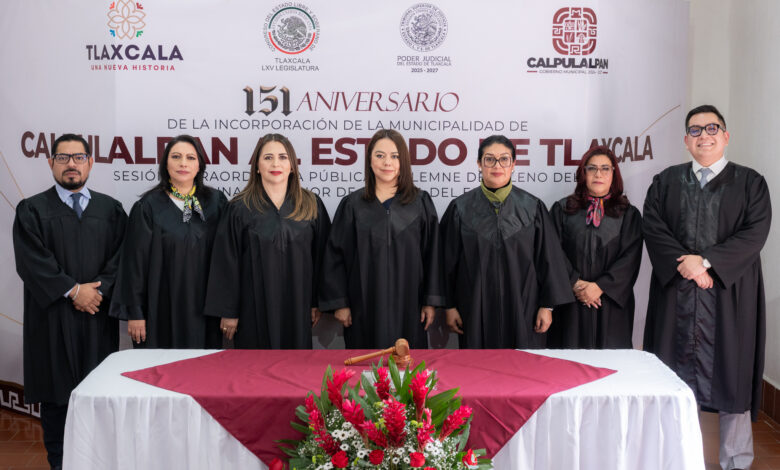 Los tres poderes del Estado representados por la Gobernadora Lorena Cuéllar Cisneros, la Presidenta de la Mesa Directiva del Congreso del Estado, Diputada Maribel León Cruz y la Magistrada Fanny Margarita Amador Montes, Presidenta del Poder Judicial, se reunieron en una Sesión Extraordinaria, Pública y Solemne en el Municipio de Calpulalpan, dando cumplimiento al