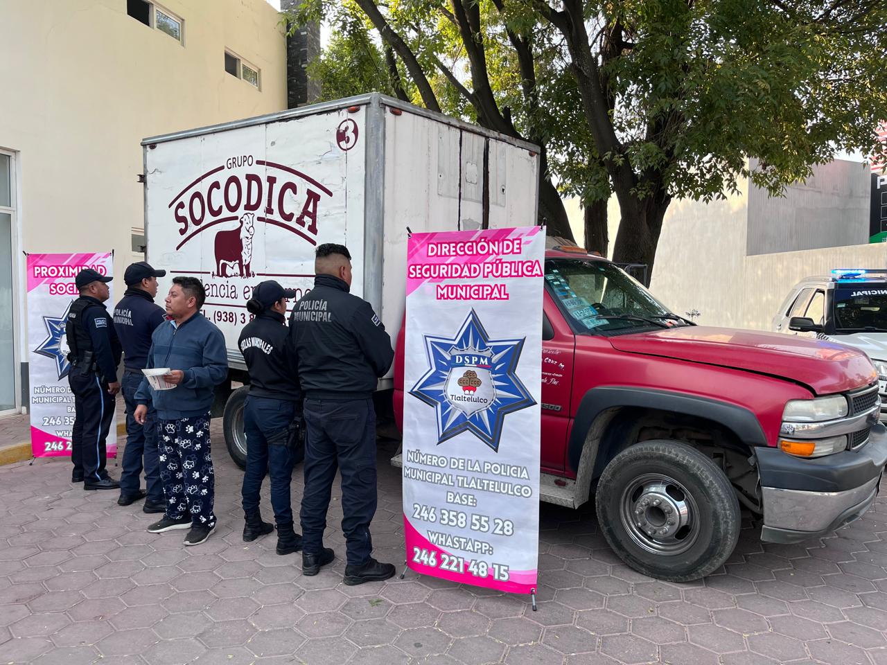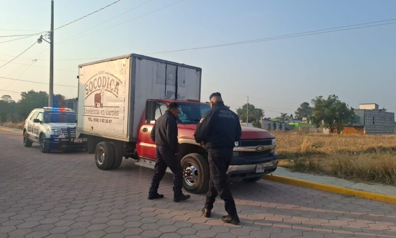 Según el reporte, elementos policiales realizaban patrullajes cuando fueron abordados por Darío N., quien denunció el robo de su unidad Chevrolet 3500, modelo 2001, color rojo, placas XB-66-306 Tlaxcala.