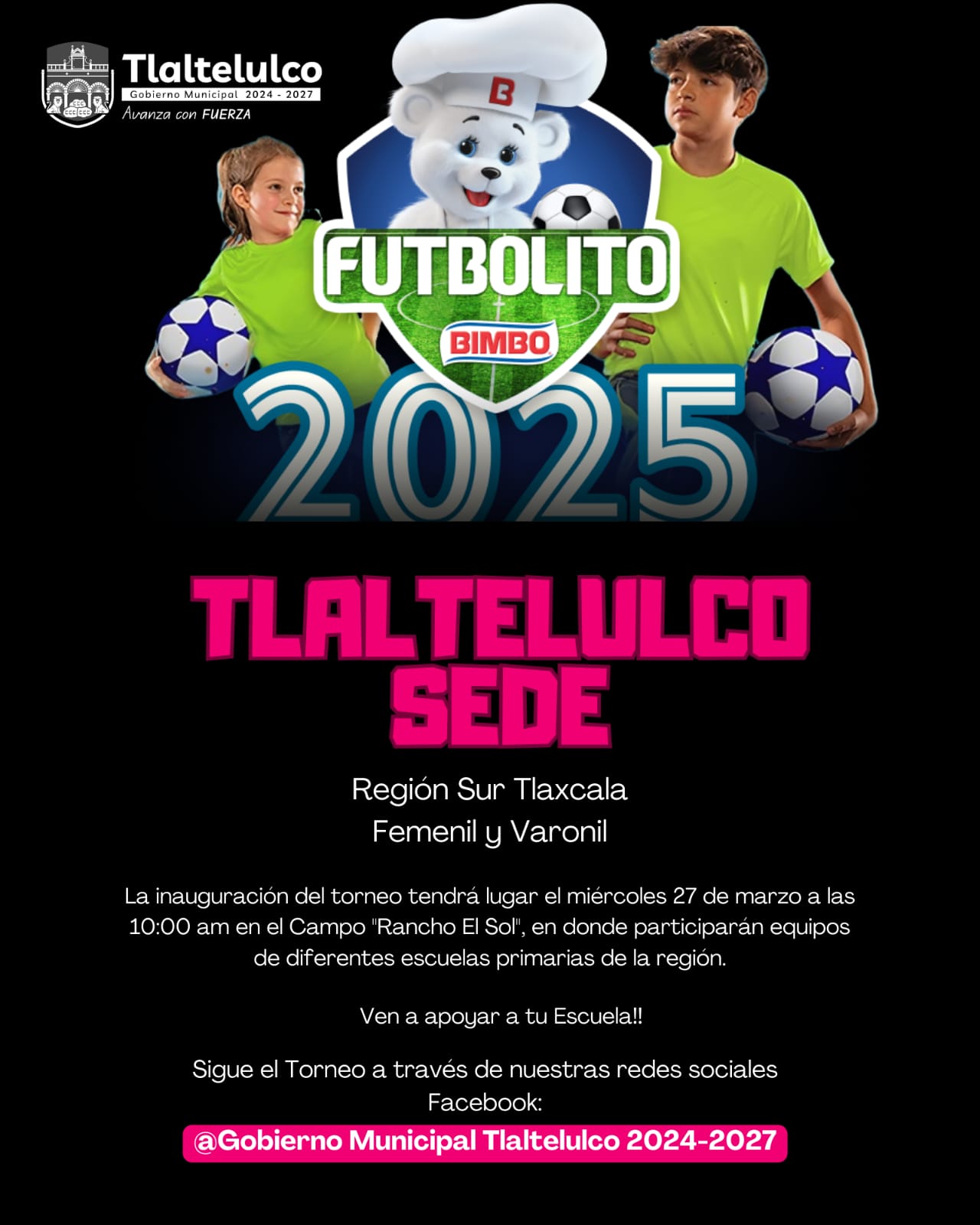 El municipio de La Magdalena Tlaltelulco será la sede del Torneo Futbolito Bimbo 2025 en la etapa Regional Sur, que se llevará a cabo en los meses de marzo y abril, informó la presidenta municipal, Rocío Meléndez Pluma.