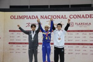 En la jornada matutina, las tlaxcaltecas Frida Vanessa González Castañeda, Samantha Itzel Carranza Muñoz y Zunami Mancera García , de la categoría 13-14 años femenil, se ubicaron en la tercera posición de la competencia en la modalidad por equipos, durante su participación en la Olimpiada Nacional CONADE 2025.