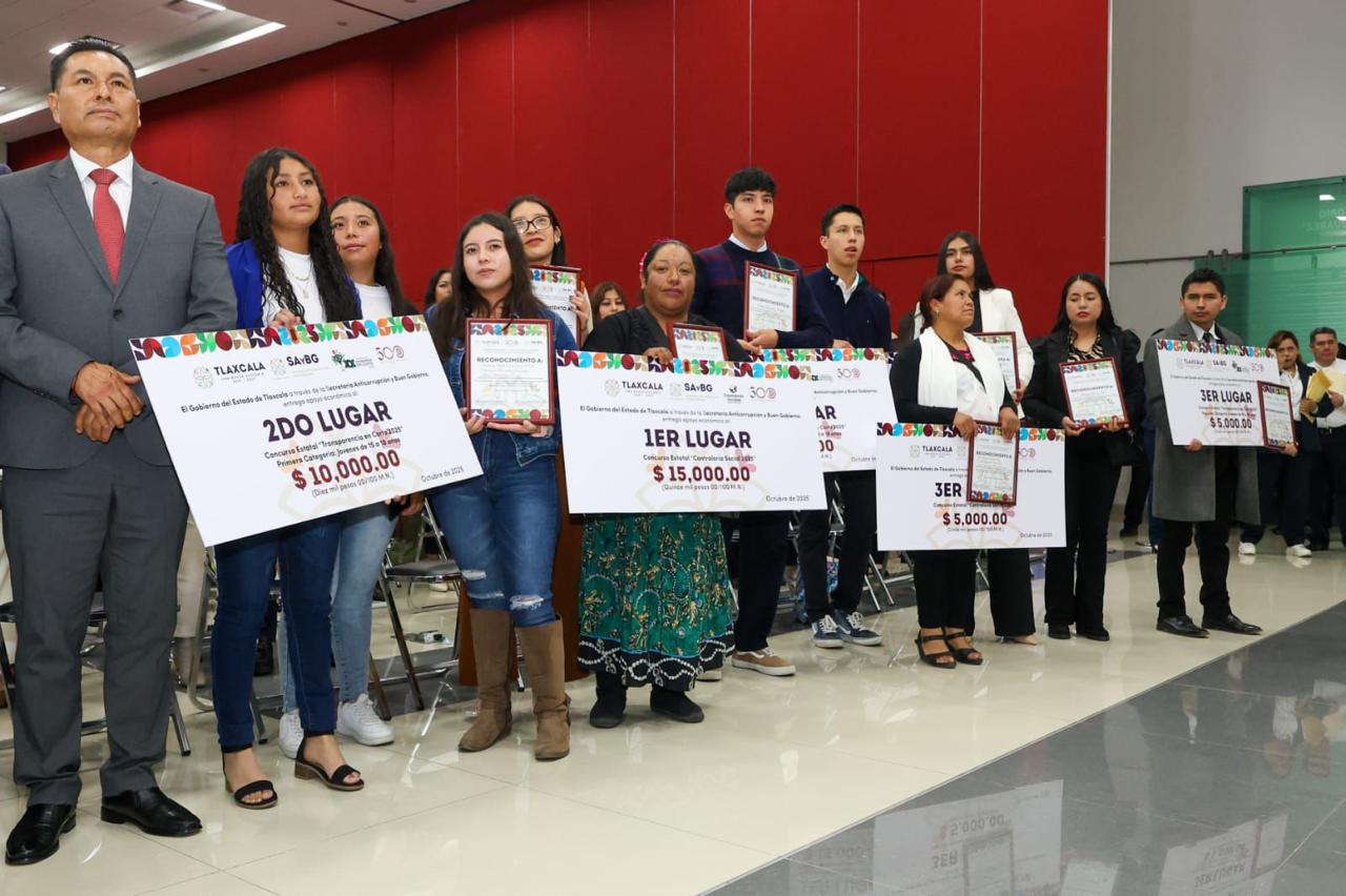 La gobernadora Lorena Cuéllar Cisneros encabezó la ceremonia de premiación del Concurso Estatal 2025 “Contraloría Social” y “Transparencia en Corto”, con lo cual se busca fomentar la participación ciudadana y la cultura de la rendición de cuentas entre los tlaxcaltecas.