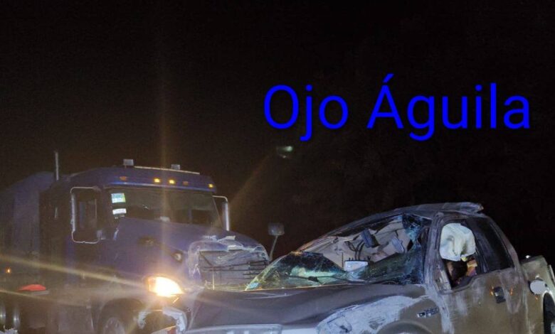 De acuerdo con los reportes preliminares, el tráiler de color azul —el cual quedó en el sitio— fue señalado como la unidad que embistió a la camioneta familiar, la cual terminó severamente dañada. Las víctimas, dos hombres y una mujer, viajaban a bordo de la camioneta con placas WM4108B.