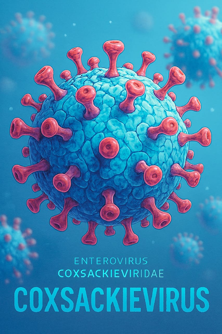 El virus Coxsackie, clasificado dentro de la familia Picornaviridae y el género Enterovirus, es un agente infeccioso común que afecta principalmente a niños en edad preescolar, aunque también puede presentarse en adultos. Su manifestación clínica más conocida es la enfermedad boca-mano-pie, caracterizada por fiebre, dolor de garganta, lesiones ulcerosas en la cavidad oral y erupciones cutáneas en extremidades.
